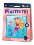 The Mermaid Diamond Art craft kit from the Junior range, including a self-adhesive picture, gems, pencil, pencil sharpener, plastic tray and instructions.