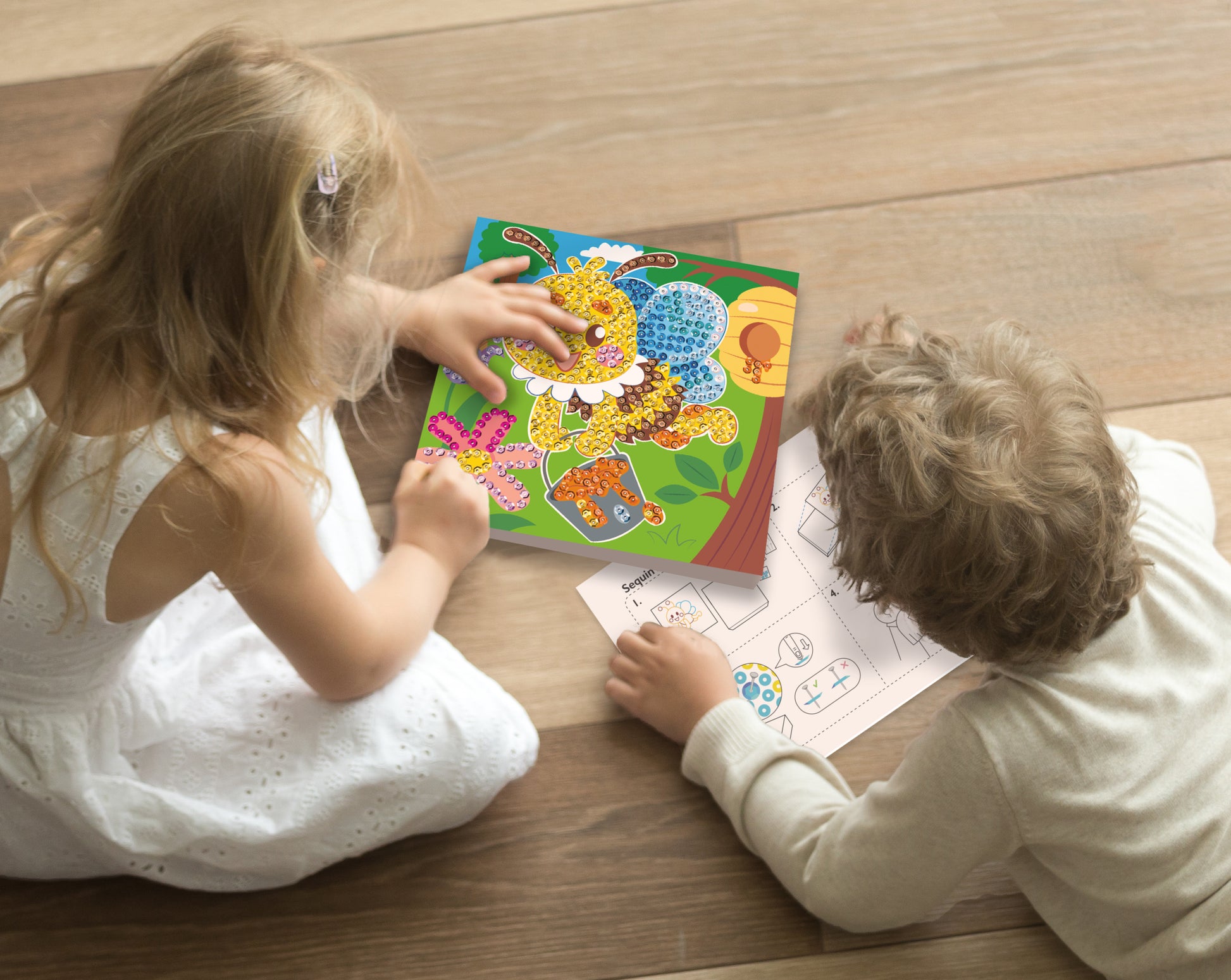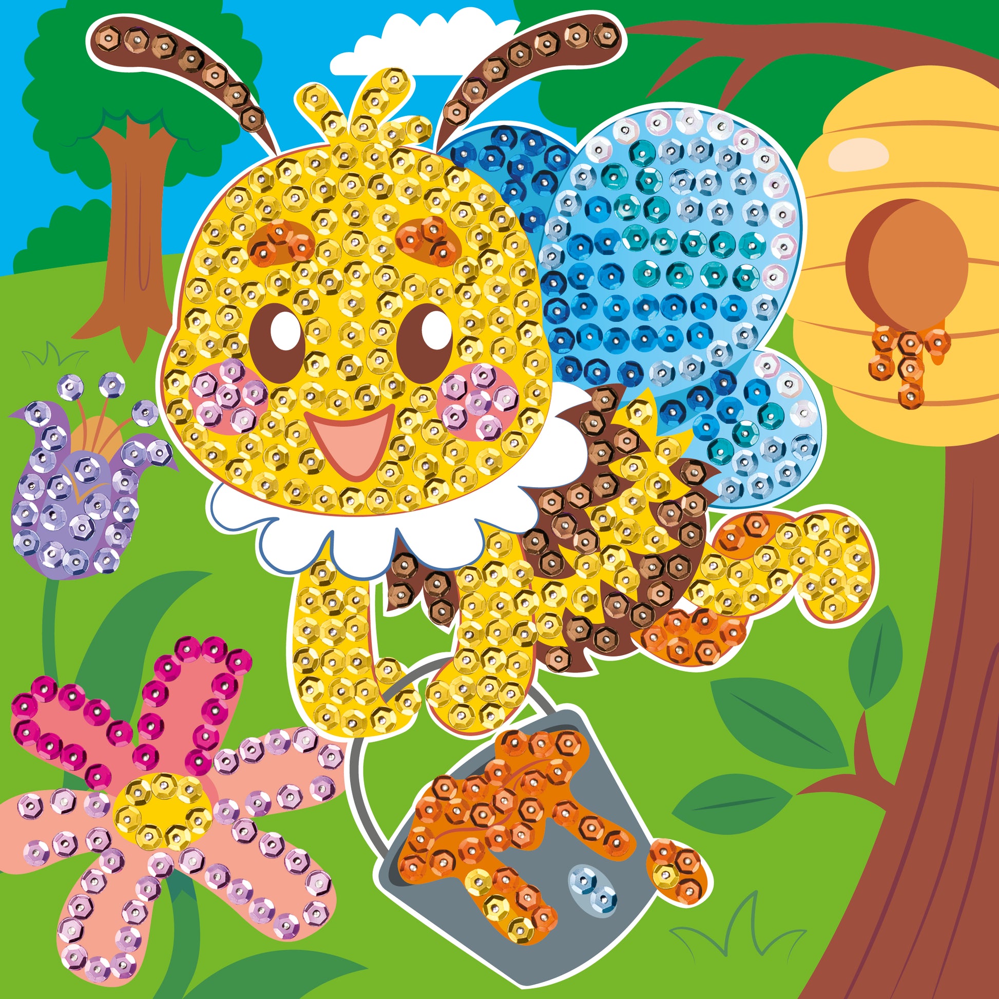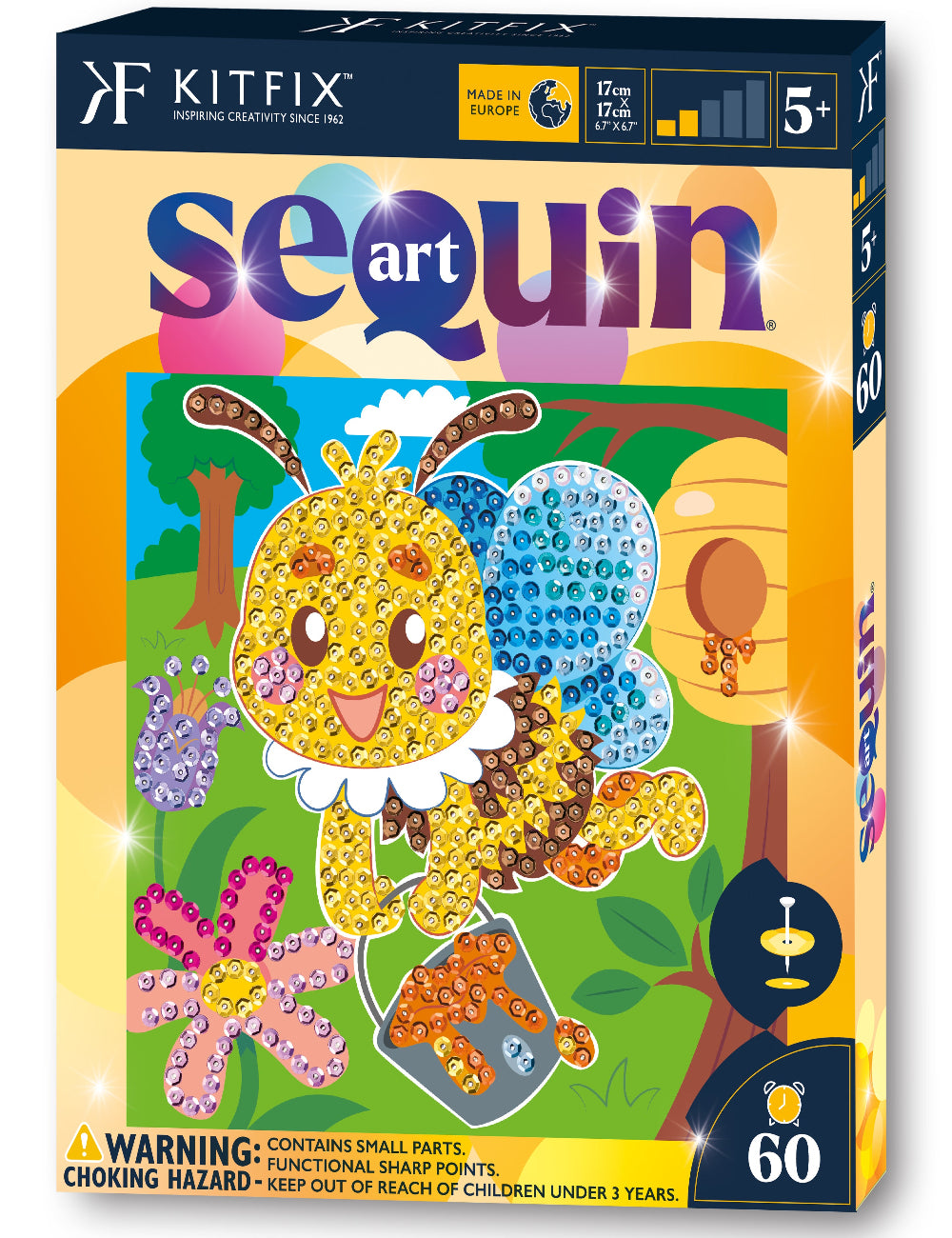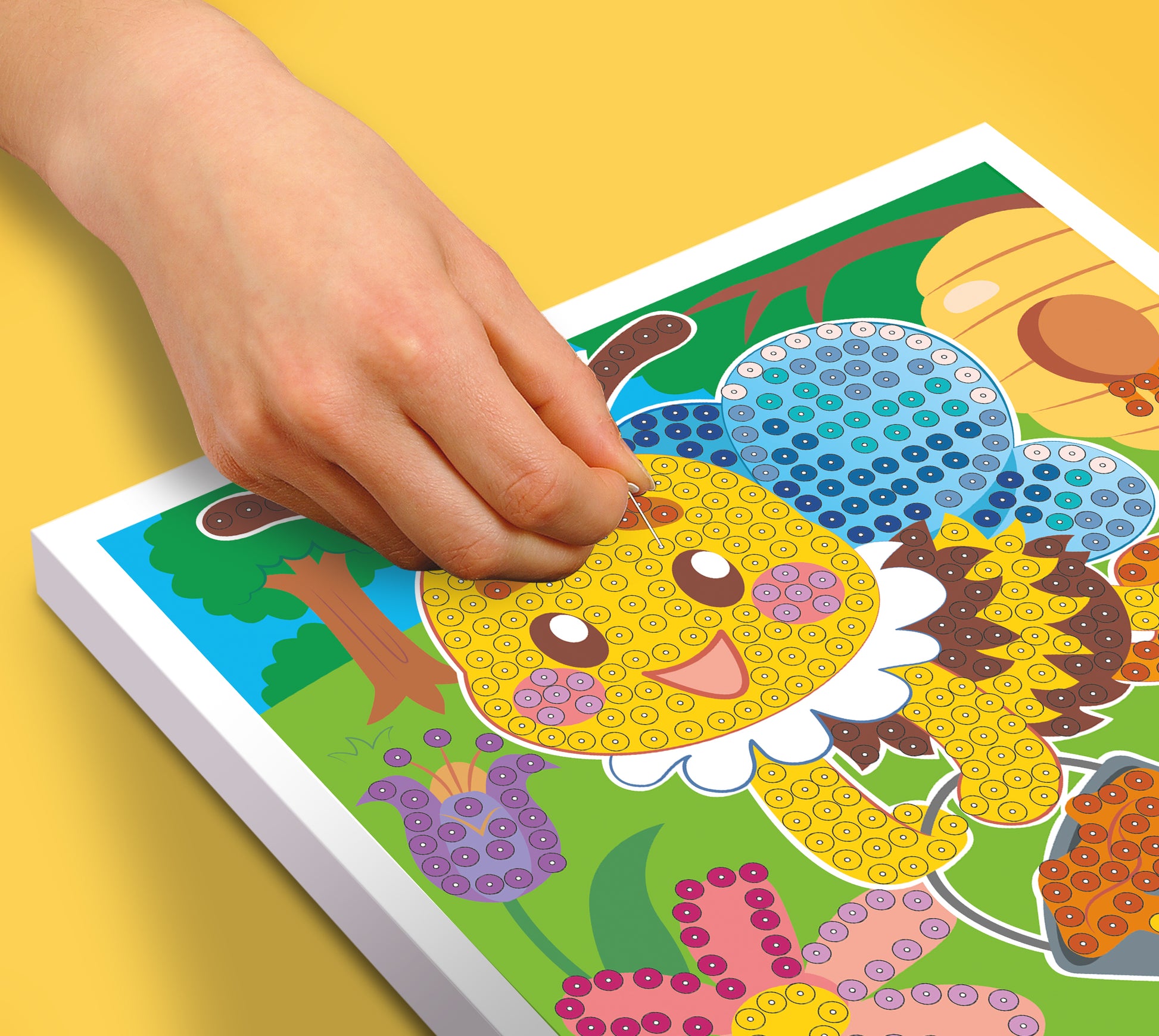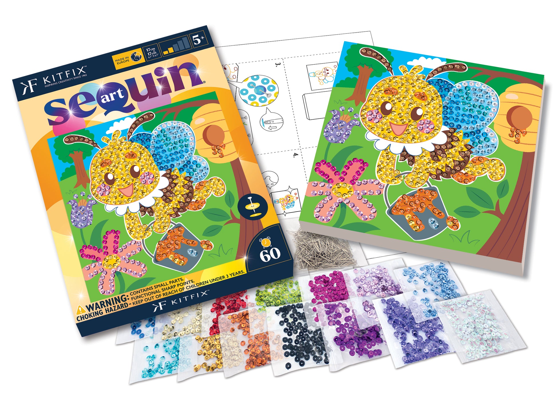 Polystyrene base, coloured picture, coloured sequins, pins, instructions