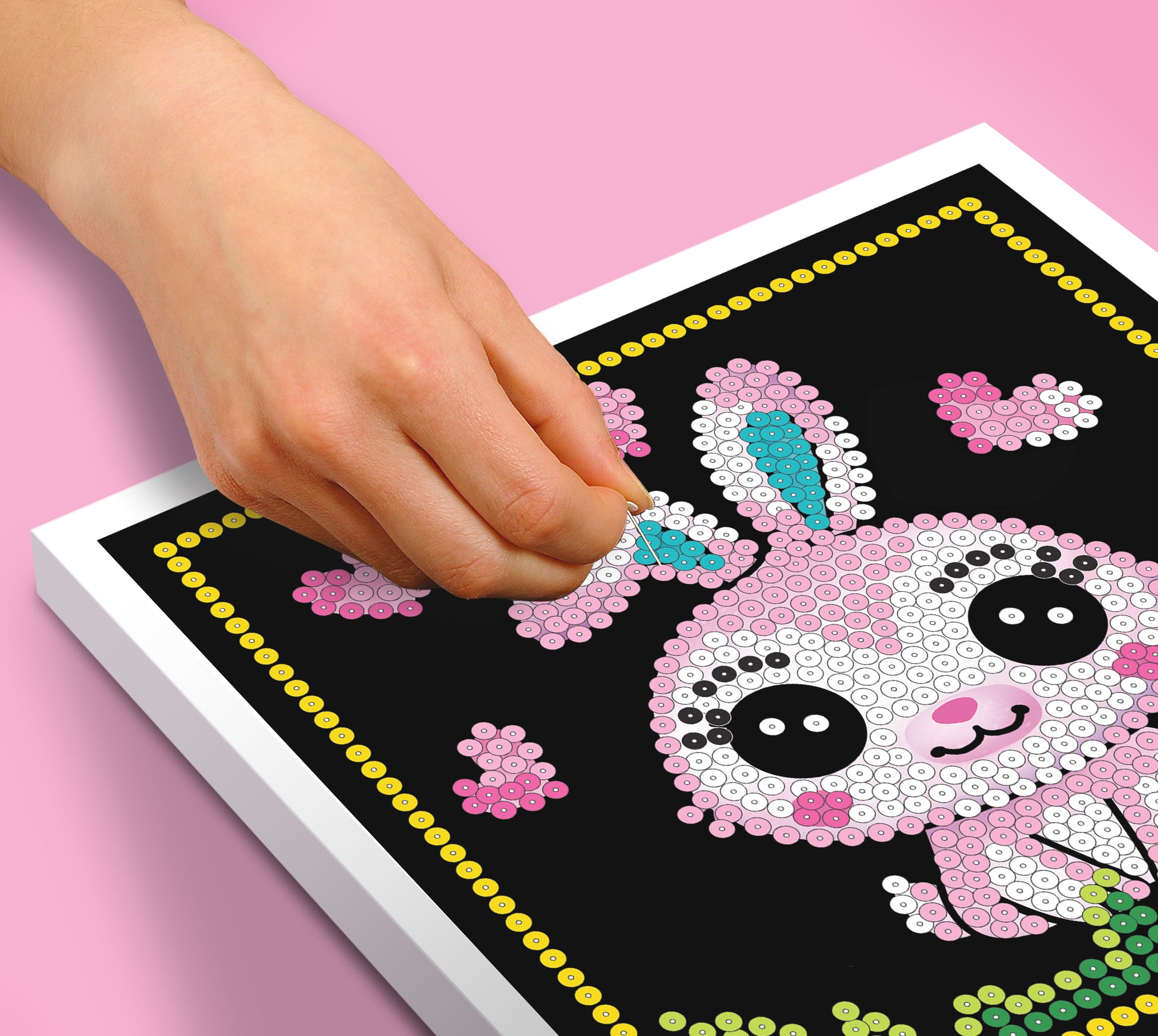 Polystyrene base, coloured picture, coloured sequins, pins, instructions