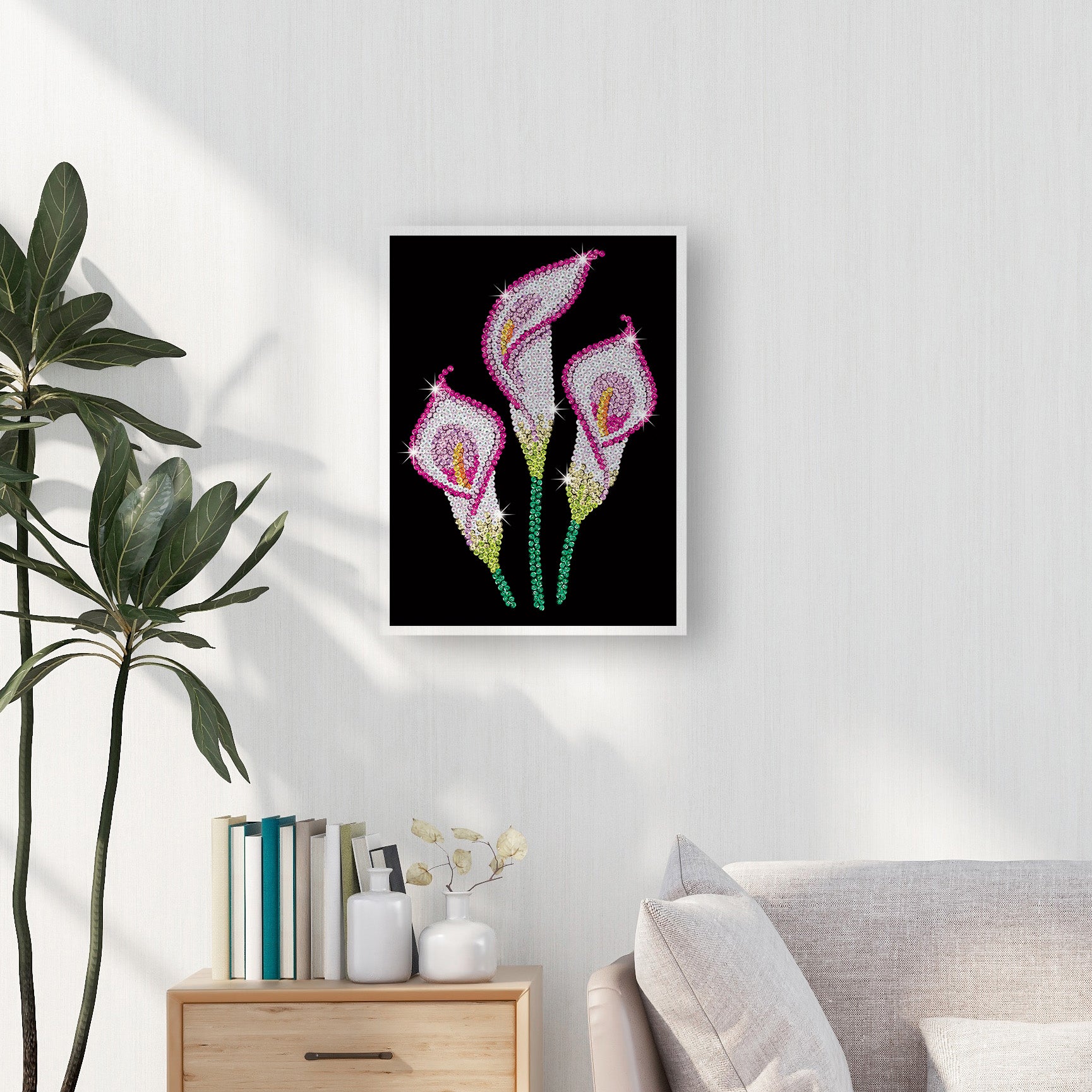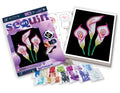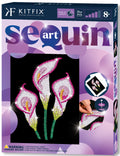 Polystyrene base, coloured wrap around picture, coloured sequins, pins, instructions, adhesive tabs
