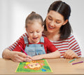 Self-adhesive picture, gems, pencil, pencil sharpener, plastic tray and instructions.