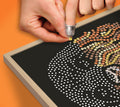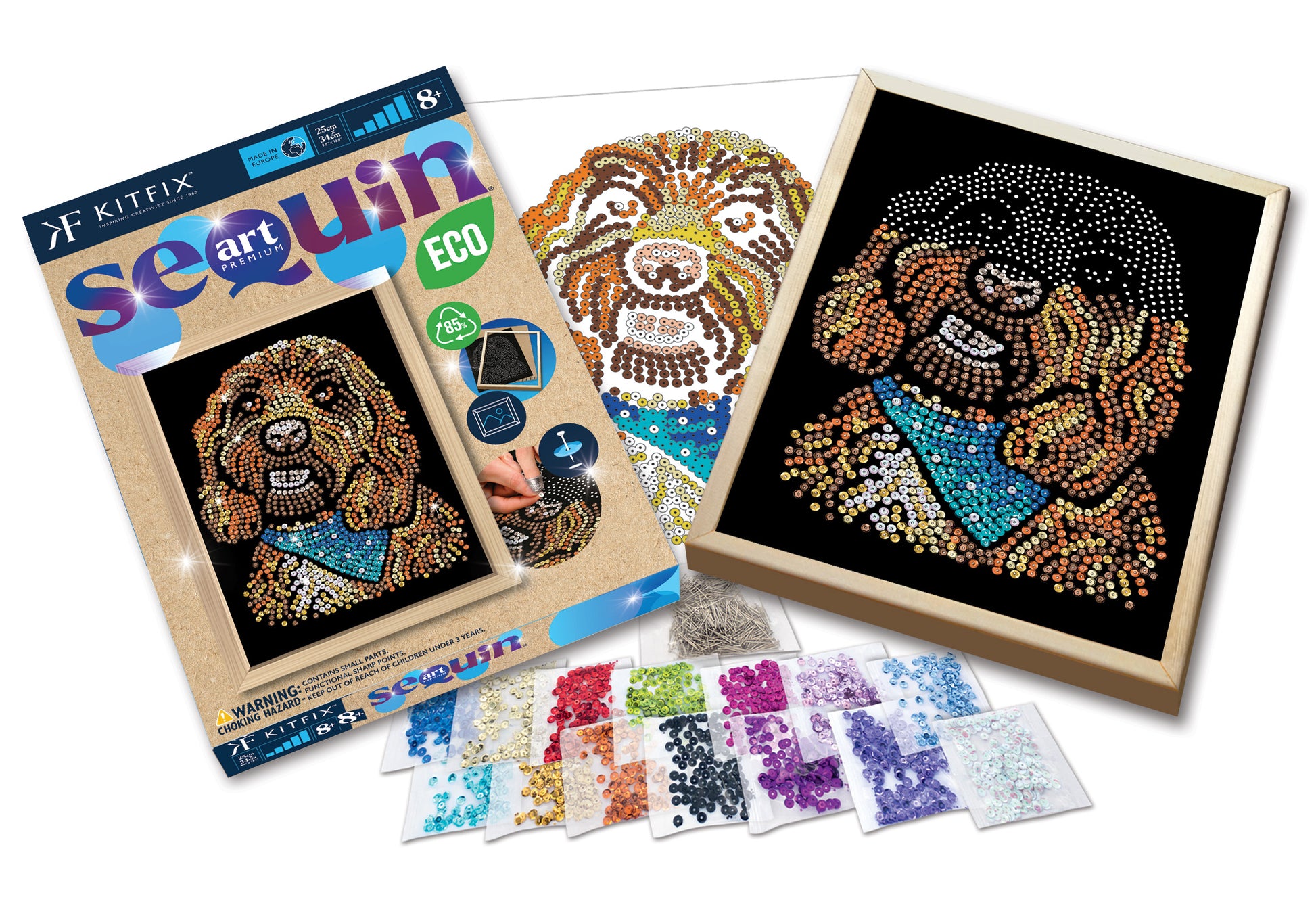 Still with a luxurious flocked velvet background and solid wooden frame, but held on an eco-friendly engineered cardboard base. For our most advanced crafters (8+), the same beautiful designs, sustainably set-off to perfection.