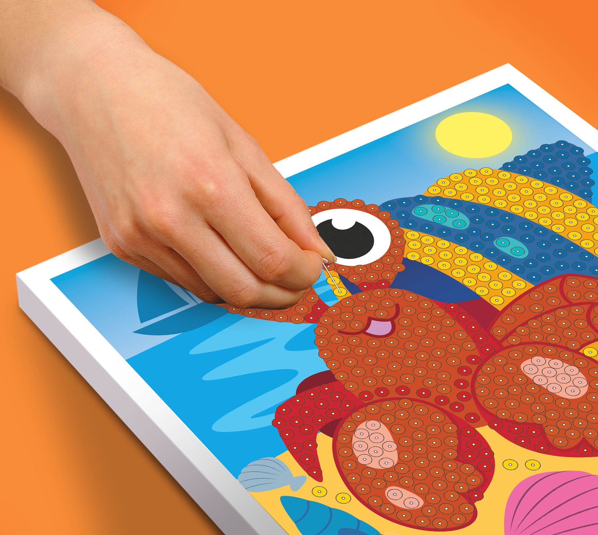 Polystyrene base, coloured picture, coloured sequins, pins, instructions