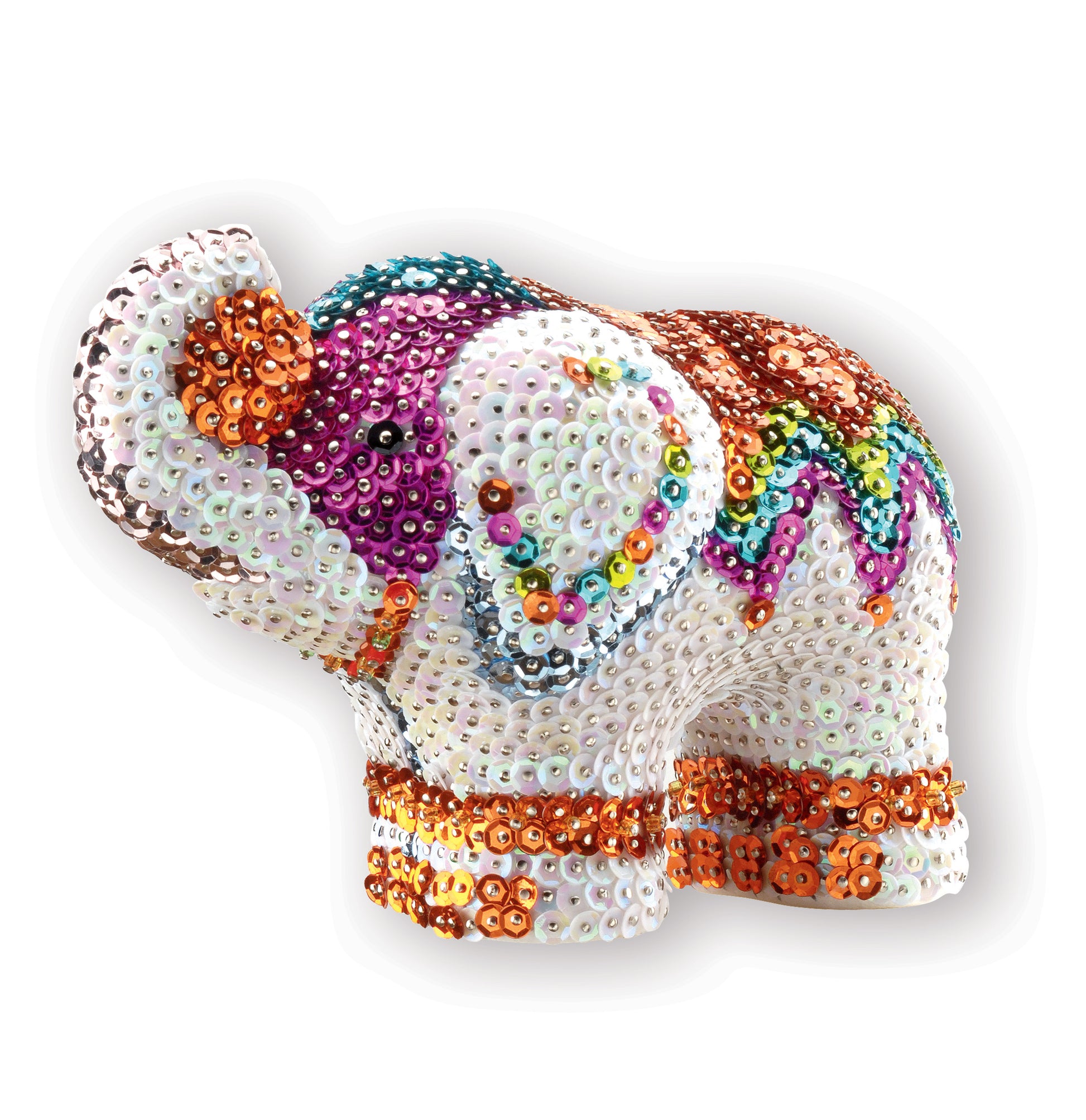 Polystyrene model, coloured sequins, pins, beads and instructions.