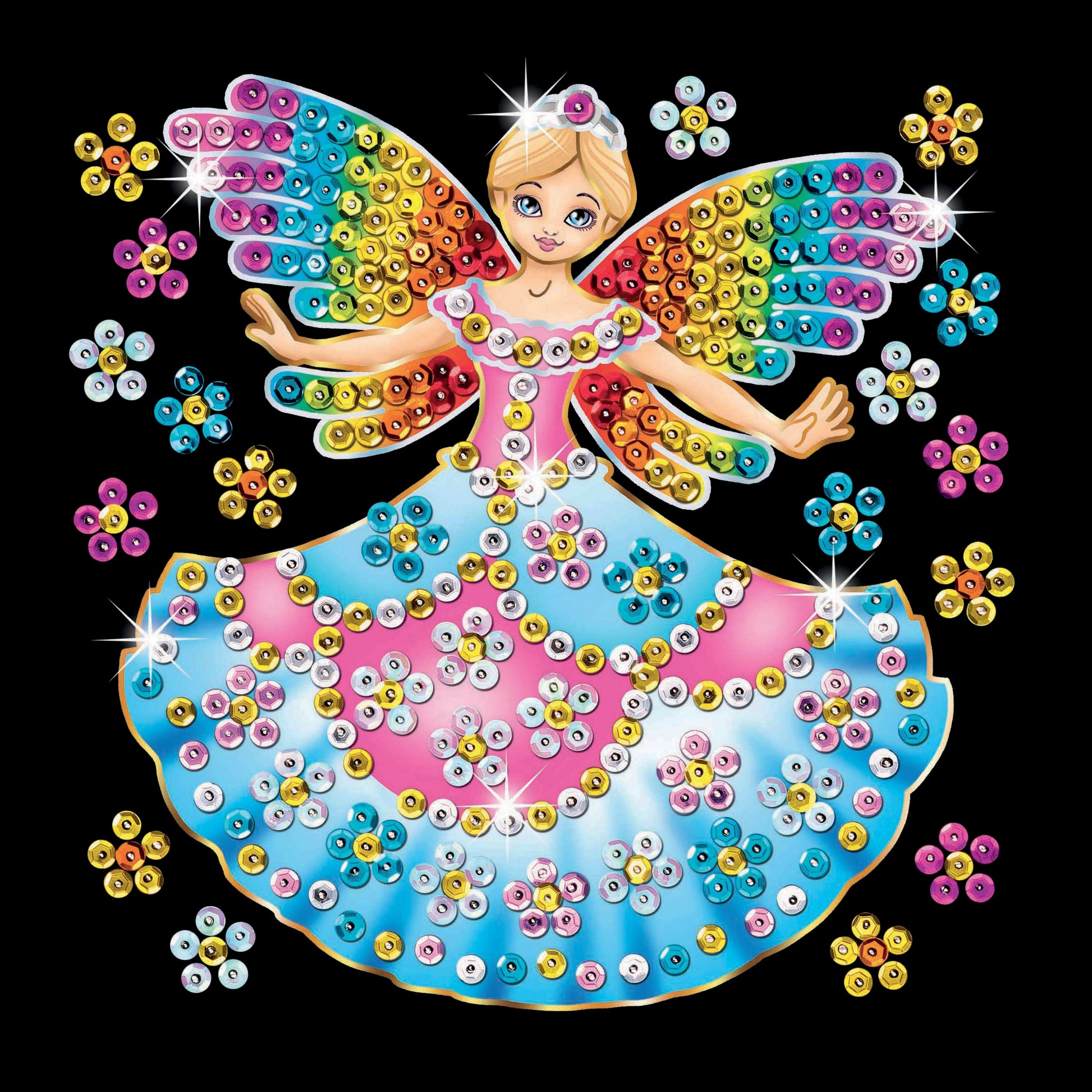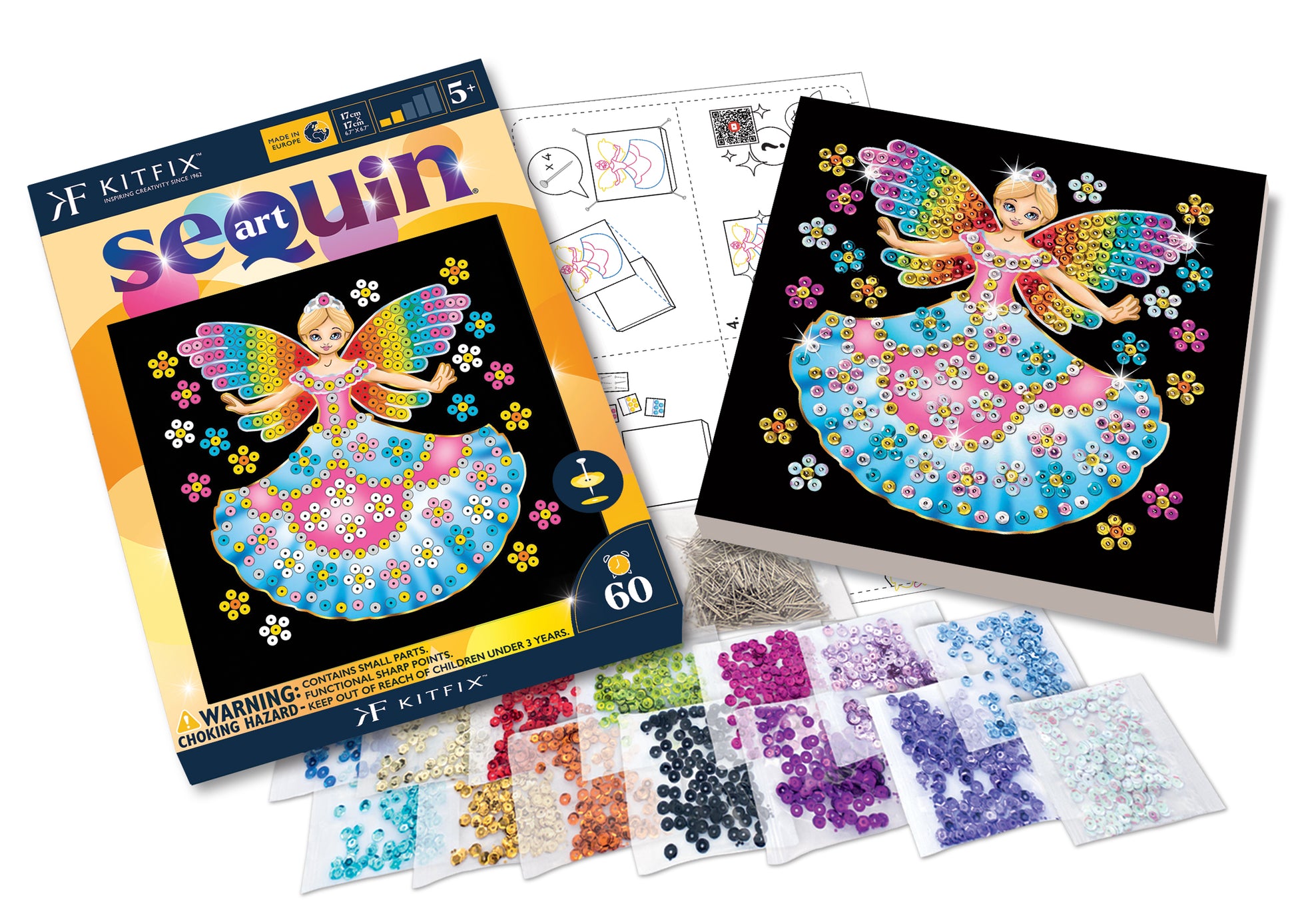 Polystyrene base, coloured picture, coloured sequins, pins, instructions