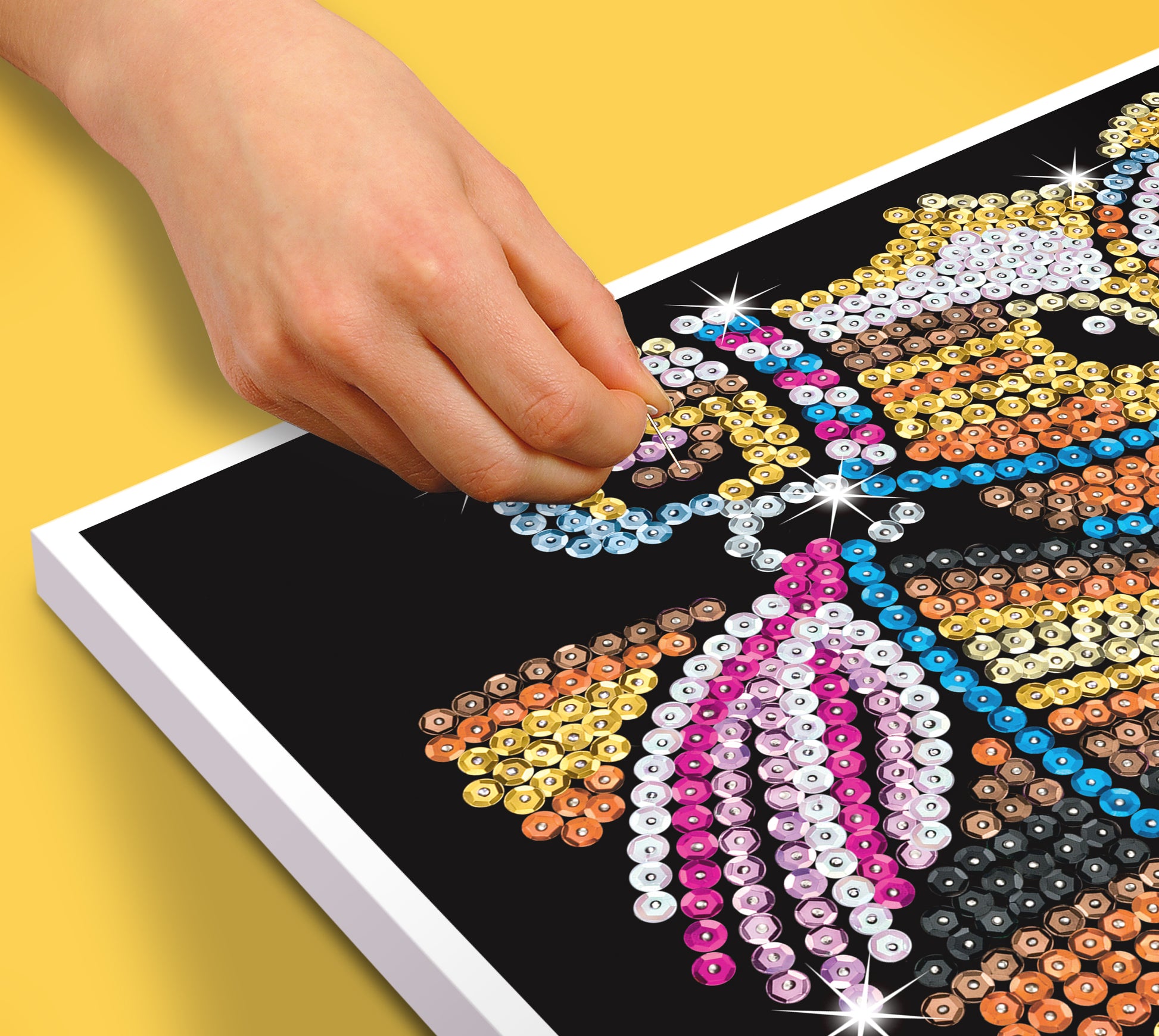 Choose from a diverse range of designs featuring wrap around edges for an ultra-stylish finish. Match each sequin with the corresponding-coloured dots and craft the day away!