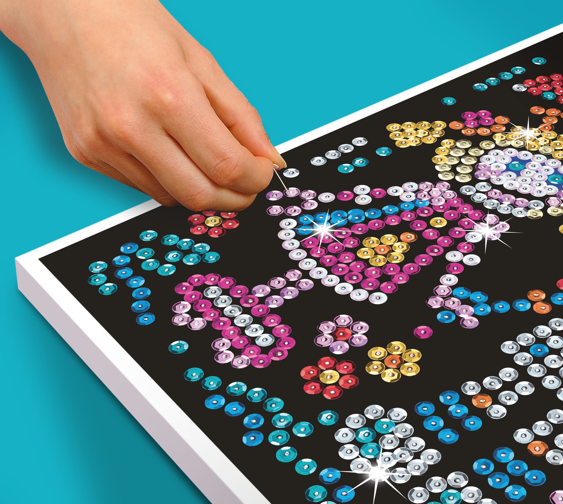 Choose from a diverse range of designs featuring wrap around edges for an ultra-stylish finish. Match each sequin with the corresponding-coloured dots and craft the day away!