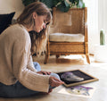 Still with a luxurious flocked velvet background and solid wooden frame, but held on an eco-friendly engineered cardboard base. For our most advanced crafters (8+), the same beautiful designs, sustainably set-off to perfection.