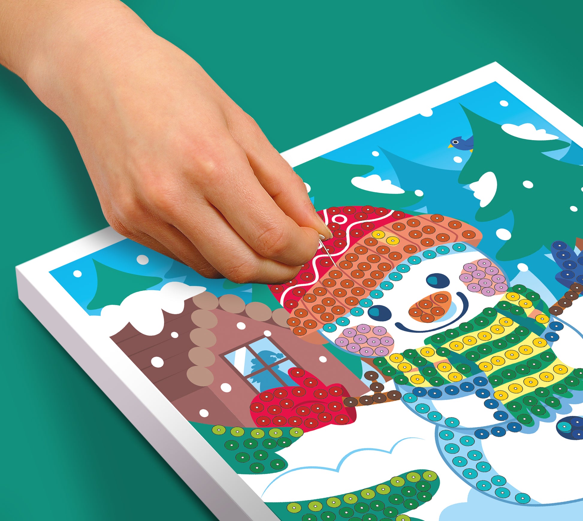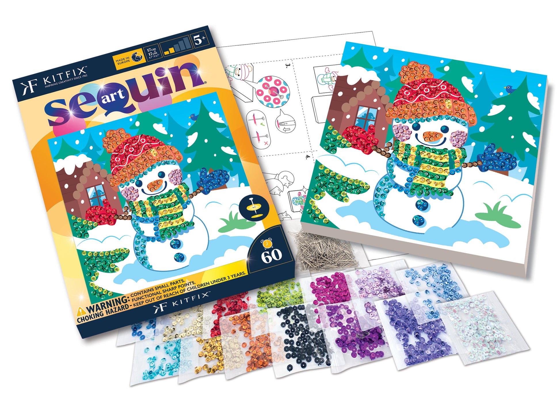 Polystyrene base, coloured picture, coloured sequins, pins, instructions