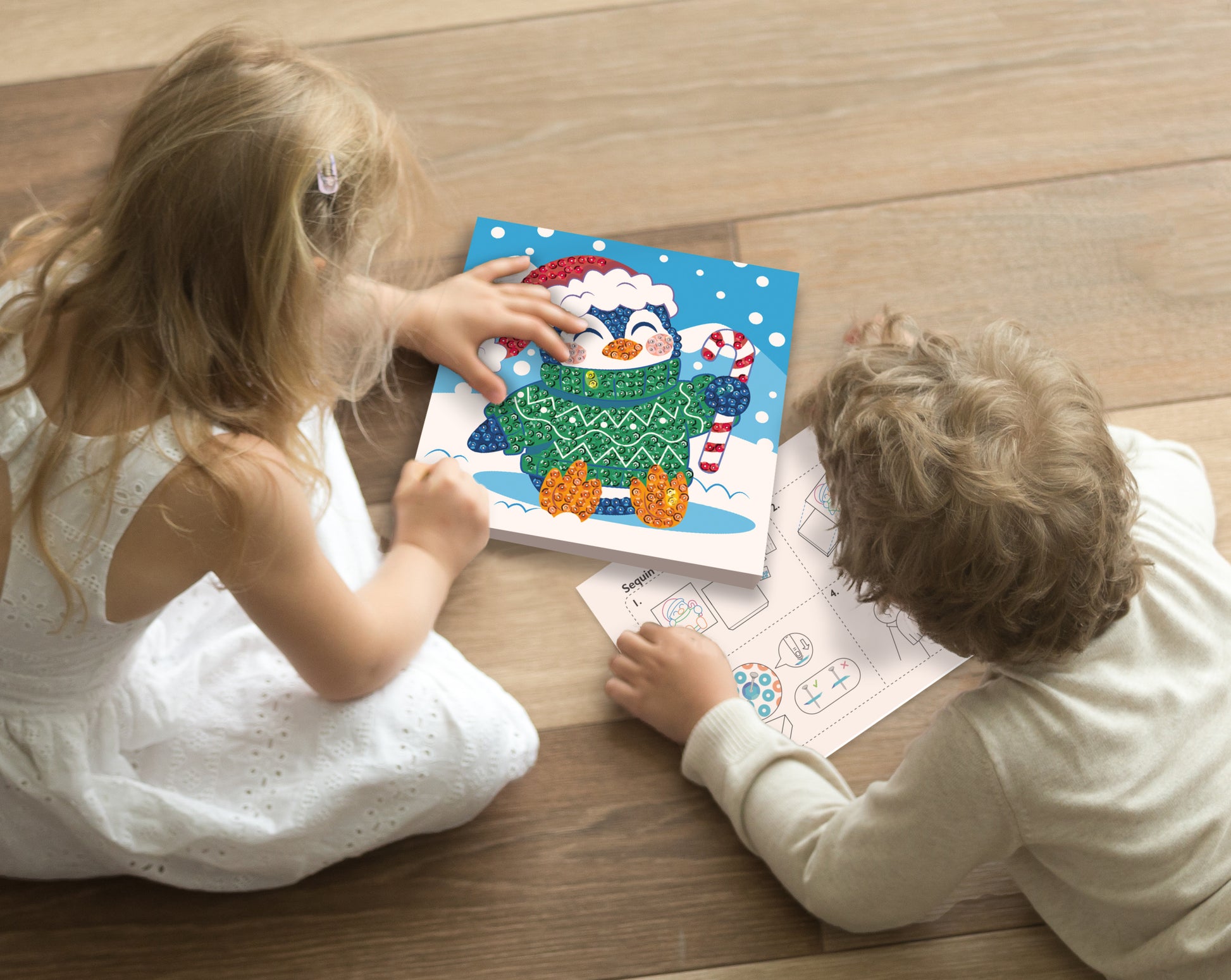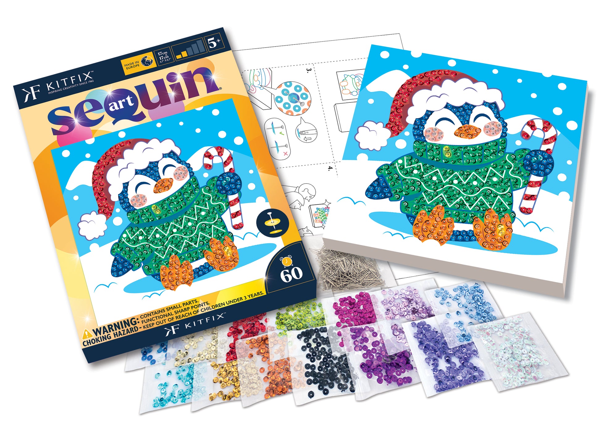 Polystyrene base, coloured picture, coloured sequins, pins, instructions